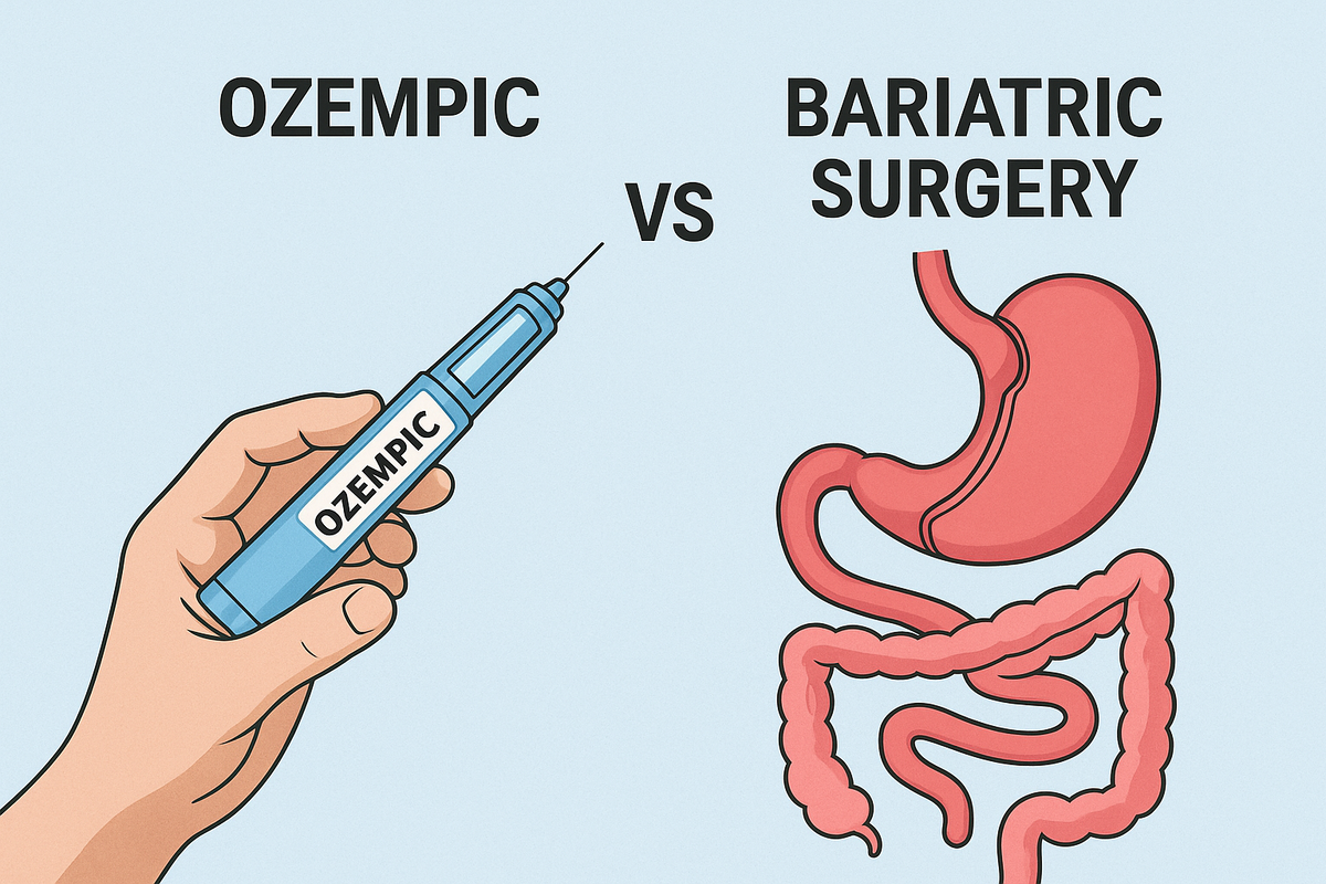 Ожирение — это не только эстетическая проблема, но и серьезный медицинский вызов, связанный с повышенными рисками диабета, заболеваниями опорно-двигательного аппарата, сердечно-сосудистых заболеваний, и, что самое печальное, сокращением продолжительности жизни. В последние годы медицина предложила два ключевых направления решения этой проблемы: фармакотерапию с помощью агонистов GLP-1 (Оземпик, Вегови, Семавик) и бариатрическую хирургию. Агонисты рецепторов глюкагоноподобного пептида-1 (GLP-1) — это препараты, изначально применявшиеся для лечения сахарного диабета 2 типа, а сегодня активно используемые и для борьбы с ожирением. Они имитируют гормон GLP-1, усиливая секрецию инсулина, тормозя выработку глюкагона и замедляя опорожнение желудка, что вызывает чувство насыщения и снижает аппетит. В клинических испытаниях (например, программа STEP) семаглутид 2.4 мг обеспечил потерю массы тела на 15–17% за 68–104 недели, но в реальных условиях снижение веса составляет в среднем 4–7% в год. Э