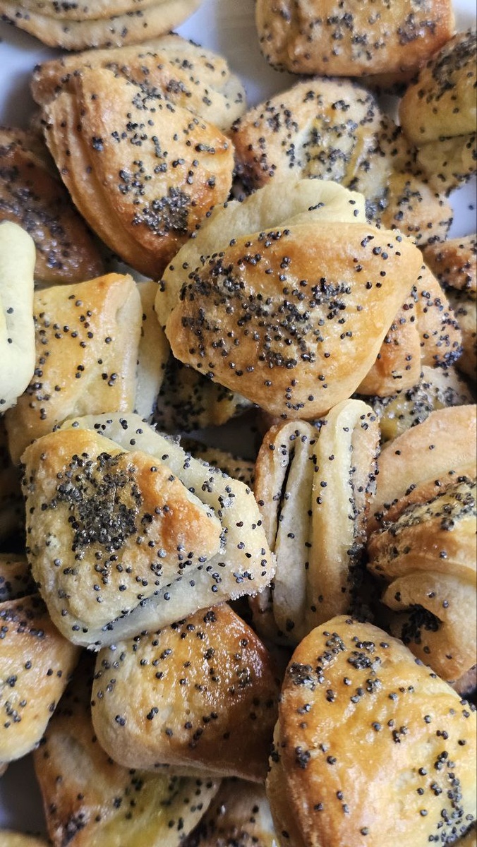 Очень вкусное печенье к 1 октября 🍁 ТВОРОЖНЫЕ УШКИ С МАКОМ☕ Ингредиенты: Творог 350 гр. Масло сливочное 150 гр. Мука 230 гр. Разрыхлитель 0.5 ч.л Соль щеп. Ванилин Сахар 150 гр. Мак 50 гр. СМЕШАТЬ ИНГРЕДИЕНТЫ, РАСКАТАТЬ ТЕСТО, ВЫРЕЗАТЬ СТАКАНОМ КРУЖОЧКИ, МАКАЕМ КРУЖОК В САХАР И МАК, СВОРАЧАИВАЕМ ПОПОЛАМ, ЕЩ РАЗ МАКАЕМ И ЕЩЁ РАЗ СВОРАЧИВАЕМ. СМАЗЫВАЕМ ЯЙЦОМ ИЛИ МОЛОКОМ. Выпекать в разогретой до 180 гр духовке 30 минут . Приятного аппетита!