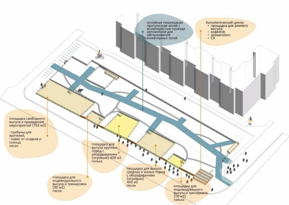 Архитектор и руководитель проекта «Гав-гав парк» Елена Мальцева рассказала, что в парке помимо прочего будут обустроены площадки для индивидуального выгула, поскольку «у питомцев бывает разный характер».