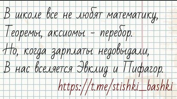Про математику #деньучителя #стишкиизбашки Стишок каждый день для настроения @stishki_bashki 📹 - видеостишки тут 👈 🙊 - а тут можно комментировать 👈 Поделитесь стишком с друзьями