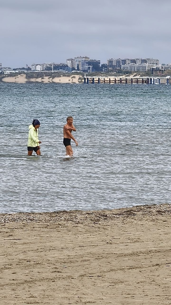 Но некоторые сегодня продолжают купаться. Хотя большинство гуляют по берегу в куртках 🍂