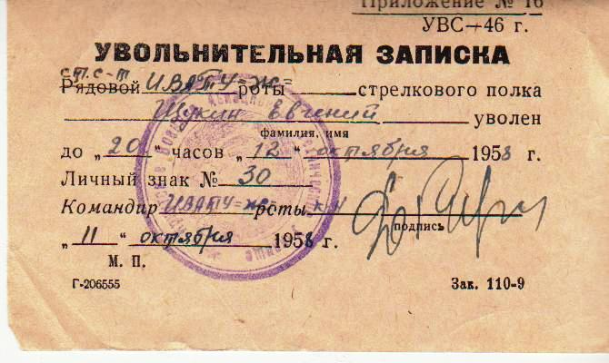В один из теплых, солнечных осенних дней 1958 года, я, успешно сдавший госэкзамены, и со дня на день, ожидающий приказа Министра Обороны СССР о присвоении мне офицерского звания, решил прогуляться в город.