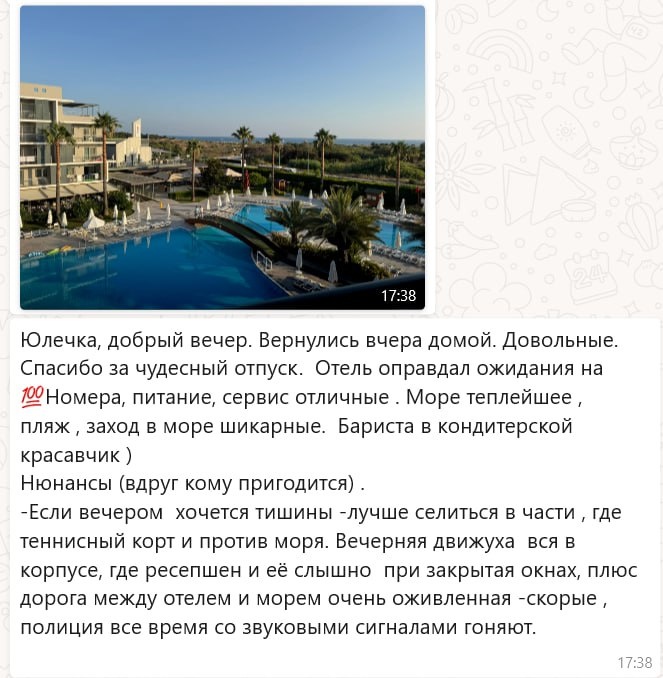 Как же классно получать отзывы от наших туристов ❤️ Каждый раз, когда вы присылаете нам фото с отдыха, видео с танцами на пляже или просто пишете: «Спасибо, это был лучший отпуск» — мы радуемся, как дети 🎉 Мы правда вкладываем душу в подбор туров. Переживаем, советуем отели, делимся лайфхаками и всегда хотим, чтобы отдых у вас был не просто «нормальный», а вау-отпуск 💫 И когда в ответ приходит ваше тёплое «всё прошло идеально» — это лучший момент нашей работы. Потому что именно ради этого мы и стараемся 💌 А если вы отдыхали с нами — пишите свой отзыв! Нам будет невероятно приятно услышать, как всё прошло 🥰