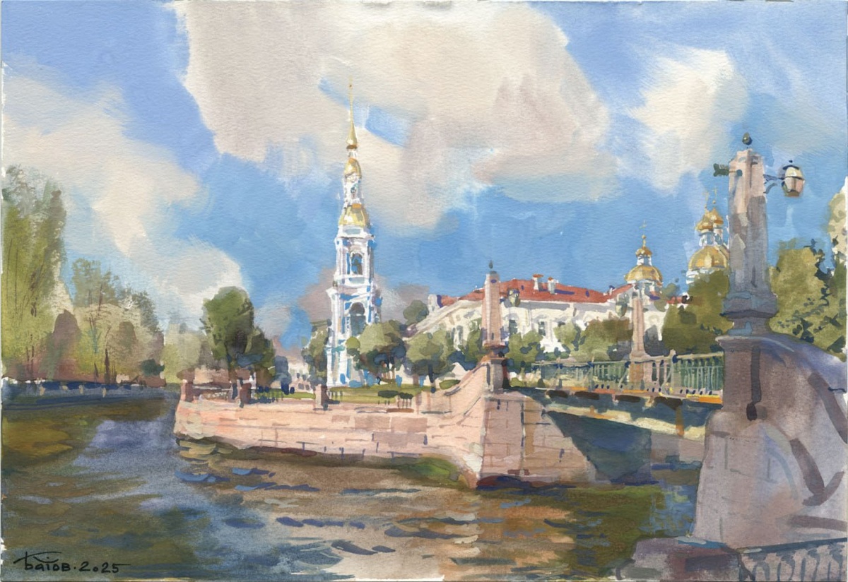 20250906 Красногвардейский мост / Krasnogvardeycky Bridge. Saint Petersburg / 26x38 / Plein air gouache painting.