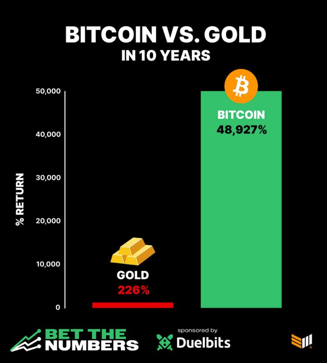 Bitcoin vs. Gold: the ultimate showdown! 💰✨ Over the last decade: Gold? A solid 226% gain. But BTC? A mind-blowing 48,927%! 🚀 Talk about a glow-up! Which would you rather have in your portfolio? #Investing #Crypto
