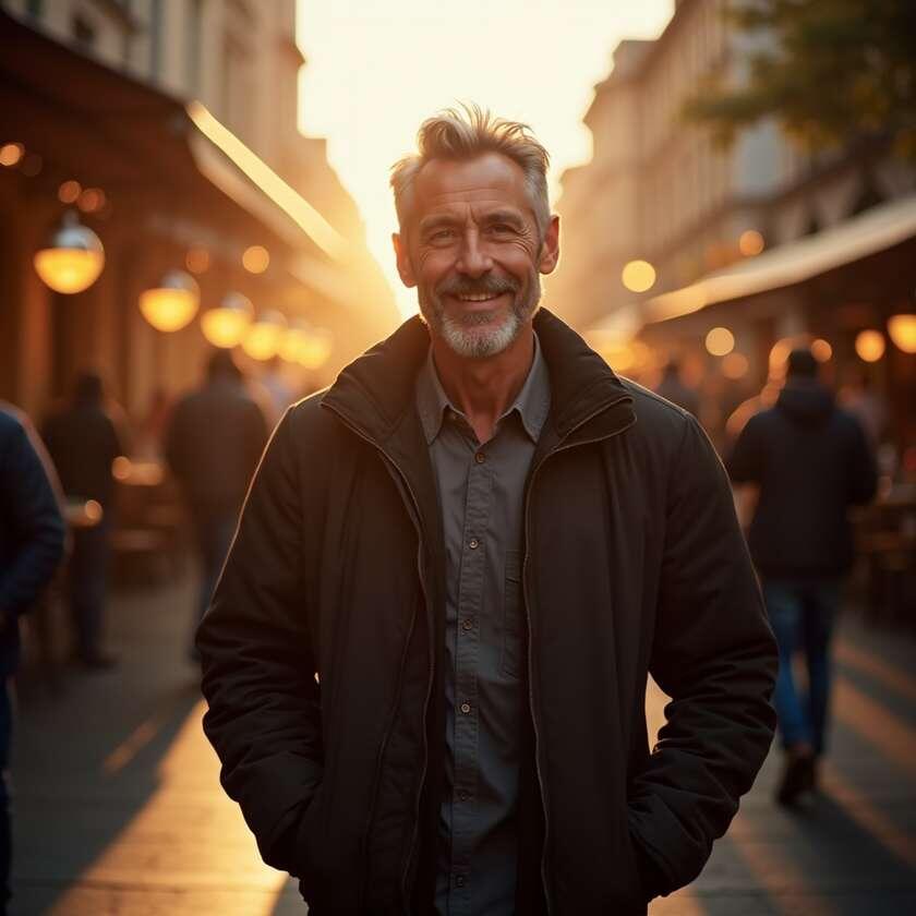 Он убрал телефон и посмотрел на своё отражение в витрине кафе. Высокий, подтянутый мужчина в хорошей куртке. Глаза блестят, улыбка искренняя. «Неужели это я?» — подумал он.
