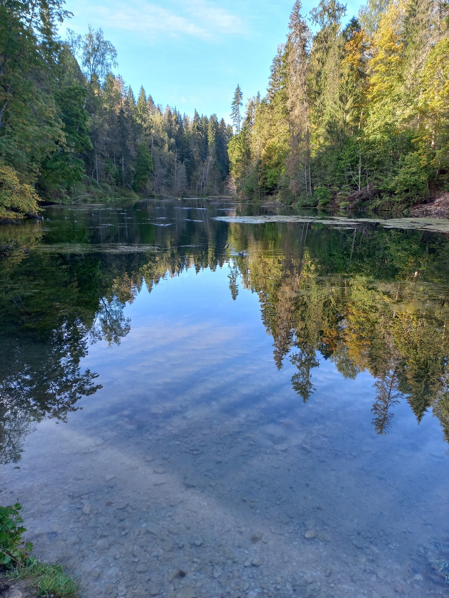 Не знаю, как сейчас обстоят дела с форелью, но пишут, что из-за радона рыбы в озёрах нет. Зато плавают уточки.