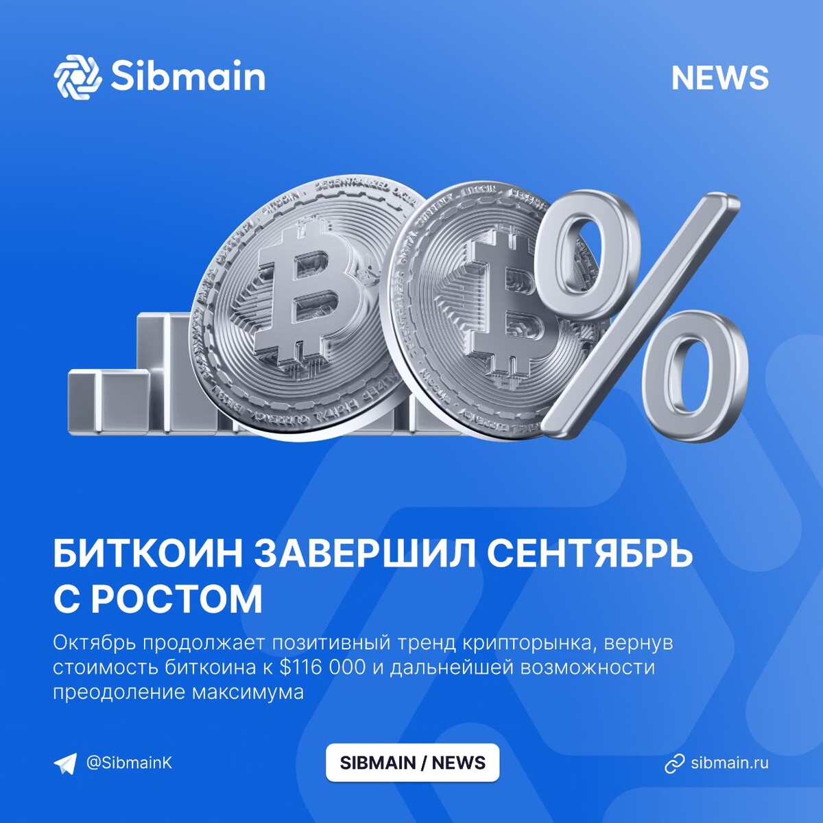 📰📰📰📰 ➡️Биткоин завершил сентябрь с ростом Биткоин по итогу сентября показал рост 5,1%, что стало третьим лучшим месячным показателем за 13 лет, по данным Сoinglass. Факторы поспособствовавшие росту: ⏺Смягчение монетарной политики ФРС; ⏺Геополитическая нестабильность; ⏺Восстановление интереса инвесторов 📍Октябрь продолжает позитивный тренд крипторынка, вернув стоимость биткоина к $116 000 и дальнейшей возможности преодоление максимума
