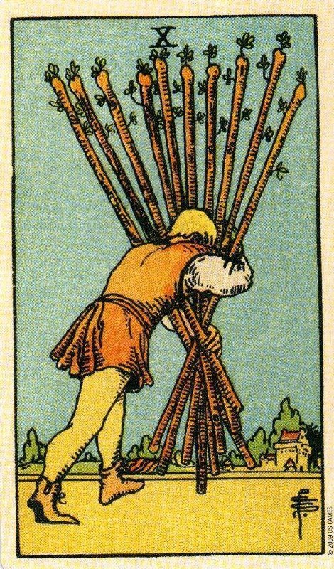 Десятка Жезлов — карта, про которую все спорят. Суть любой десятки в том, что это всегда конец какого-то этапа. Но фишка в том, что конец может быть разным — не обязательно счастливым. Это просто переход к новому этапу, и всё. На карте нарисован человек, который тащит кучу жезлов. Он уже на пределе, вот-вот всё рассыпется, но продолжает держать. Так и хочется добавить: Спааааартааа!!) -Человек перегружен по полной -Он на грани срыва -Тащит свою ношу, хоть и с трудом -Может всё потерять, но не сдаётся Главное тут не то, что он легко справился, а то, что он упёртый! Да, может, энергию бы лучше направить куда-то ещё, но нет — он тащит эту ношу. Кстати! У меня под этой картой, проходят Овны) Он: -Не бросил начатое дело. Лучше бы бросил… -Доведёт до конца, даже если сложно. -Проявит характер. -Получит опыт, как справляться с трудностями. В итоге Десятка Жезлов — это победа через преодоление. Да, тяжёлая, неприятная, может, даже не особо радостная, кривая, косая. Но это всё равно по