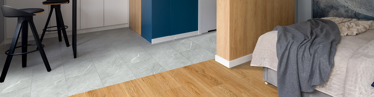 SPC (Stone/Stone‑Polymer Composite) — жёсткий винил с минеральным наполнителем в ядре и ПВХ‑матрицей. Полностью влагостойкий, геометрически стабилен, часто со встроенной подложкой IXPE/EVA. За ресурс отвечает толщина защитного слоя (типовые значения 0,3–0,5 мм) и качество лако‑полиуретанового финиша.