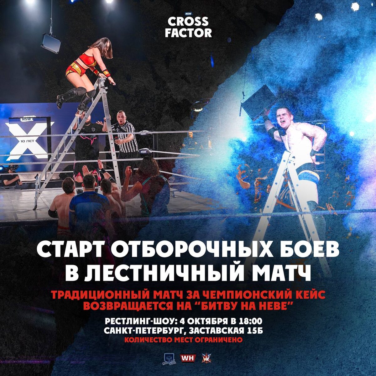 💡 ЛЕСТНИЧНЫЙ МАТЧ ЗА ЧЕМПИОНСКИЙ КЕЙС НА "БИТВЕ НА НЕВЕ" 🔆 БИЛЕТЫ: https://nsw.qtickets.ru 22 ноября пройдет уже традиционный лестничный матч за чемпионский кейс, дающий право биться с любым чемпионом в течении одного года. А уже 4 октября стартуют отборочные бои в этот матч, поэтому приходите и не пропускайте такое событие. ———————————————— NSW CROSS FACTOR Дата: 4 октября 2025 г. Место: База NSW Двери: 17:45 Время начала шоу: 18:00 —————————————————— По вопросам рекламы и сотрудничества - spbnorthernstorm@gmail.com