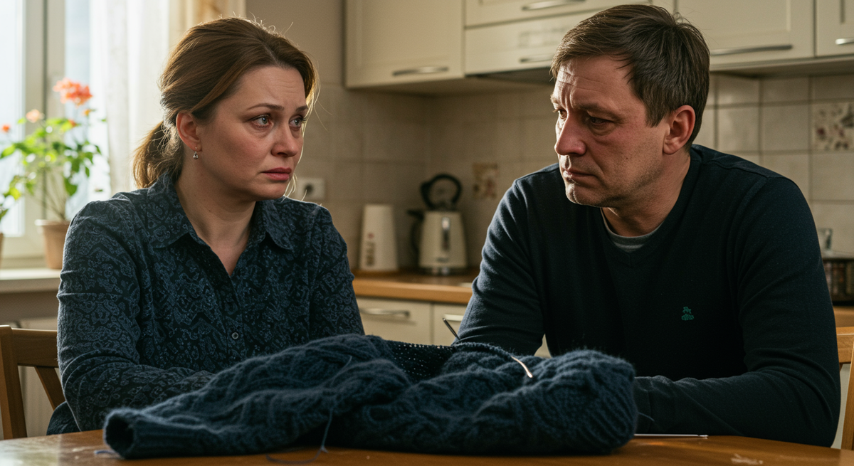 Костя медленно поднял глаза. Он смотрел на нее долго, изучающе. Словно видел впервые. Он смотрел на ее уставшее лицо, на темные круги под глазами, на решительно сжатые губы. Потом его взгляд снова опустился на свитер в его руках. Он провел пальцами по тому самому месту, где сбивался узор — по кривым, нервным петлям, которые она связала в вечер их ссоры.