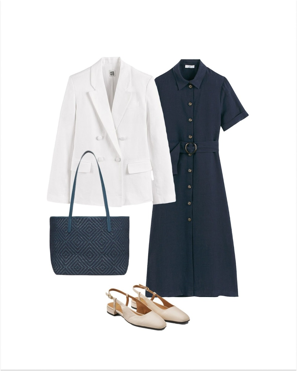 Офисный гардероб давно перестал быть синонимом «скучной серой классики» и наши стилисты вам это покажут. Их формула - архитектура силуэта, благородные фактуры и нюансные цвета. На деле это - структурированные жакеты, струящиеся ткани, остроносые туфли, ультрамодные цвета и мягкий трикотаж. Следуйте советам и будьте словно в центре модного подиума между совещаниями. Мы выбрали семь ярких и необычных вариантов для офиса, которыми стилисты La Redoute делятся на наших официальных страницах ВК и Телеграм. Смотрим? Белоснежный двубортный жакет подчеркнет плечи и добавит немного деловой резкости, а темно‑синее платье‑рубашка аккуратно соберет весь силуэт. Палитра «молоко и морской штиль» работает безошибочно: прохладно, чисто, уверенно. Минимум украшений, максимум выверенного вкуса - образ, в котором легко проводить совещания и так же легко завершать день. Пиджак Платье Сумка Балетки Здесь гладкий черный жакет задает архитектуру всего силуэта, а строгие бермуды вместо брюк делают дресс‑код о