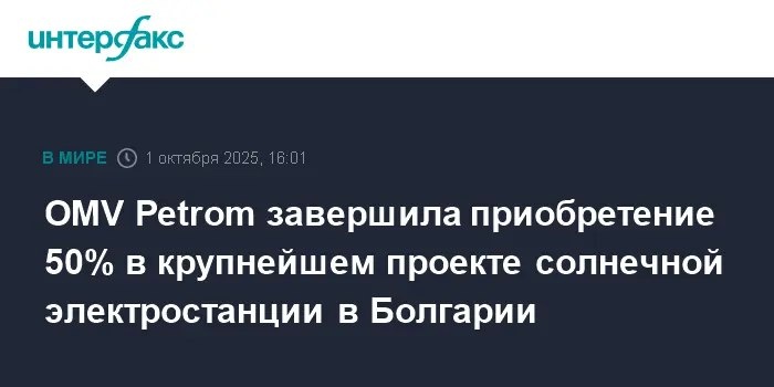OMV Petrom и Enery приобретают 50% в солнечной электростанции Gabare в Болгарии Восточная Европа становится зеленее! 🤩 OMV Petrom и Enery замутили крупную сделку: теперь им по 50% в мега-солнечной станции Gabare в Болгарии. Мощность 400 МВт, плюс батарейки для стабильности. Станет крупнейшей в Болгарии, эх, красота! ☀️♻️ 💡 Подробнее на: todey.ru 📷 Фото: www.interfax.ru 📎 Подпишитесь на наш канал: todey_news