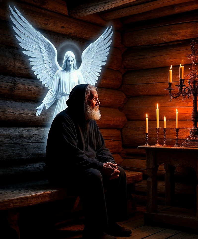 Один старик частенько в церкви был, И там сидел в углу почти что неподвижно, Он никогда, ни с кем, не говорил, А с губ его молитв было не слышно. . Церковник как-то раз вопрос задал: "Что говорит тебе Господь в церковном свете ?" "Бог ничего не говорит"- старик сказал, "Господь меня лишь слушает"- старик ответил. . "А ты тогда что говоришь Творцу ?"- Церковник старику опять вопрос задал, "Я тоже слушаю Творца, и я молчу"- Церковнику в ответ старик сказал. . У этой притчи понимание такое: Старик - Духовной Истины Венец, Без слов беседа с Господом - благое ! В такой беседе пребывает Бог-Отец. . Старик не ждёт совет, иль наставление, В молчании старик сливается в Творцом, И в тихом старика сердцебиении, Творец присутствует и знает все о нём . "Я только слушаю"- в ответ старик сказал, Старик не просит Бога, ведь Творцу виднее, Старик смиренно принимает- что Бог дал, Ведь нам в Нагорной Проповеди Бог сказал: "Отец Небесный знает что для нас нужнее!" . Так будем братья, сестры- как Старик
