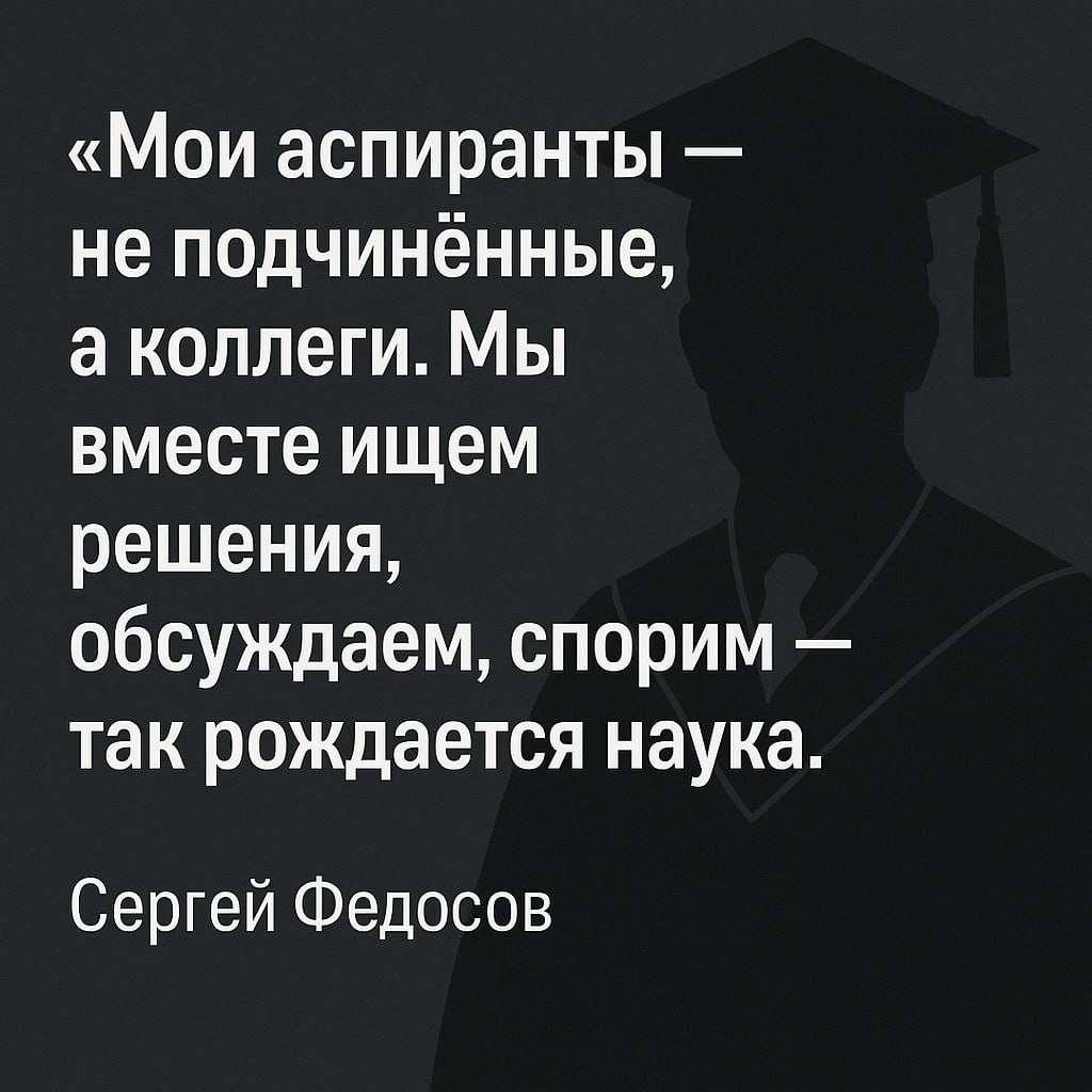Сергей Федосов: «В науку идут те, кто этим живёт» В эфире программы «Экспертное мнение» на Ивановском общественном телевидении заслуженный деятель науки РФ, академик Российской академии архитектуры и строительных наук, профессор МГСУ Сергей Федосов рассказал о своём педагогическом опыте. За годы работы он подготовил 77 кандидатов и 27 докторов наук. Учёный подчеркнул, что успех его школы основан на партнёрском отношении с учениками: «Мои аспиранты — не подчинённые, а коллеги. Мы вместе ищем решения, обсуждаем, спорим — так рождается наука». Федосов уверен, что в научную среду сегодня приходят те, кто действительно увлечён исследованием, а государству необходимо повышать престиж профессии учёного: поддерживать грантами, внедрением разработок и уважением к традициям отечественной науки.