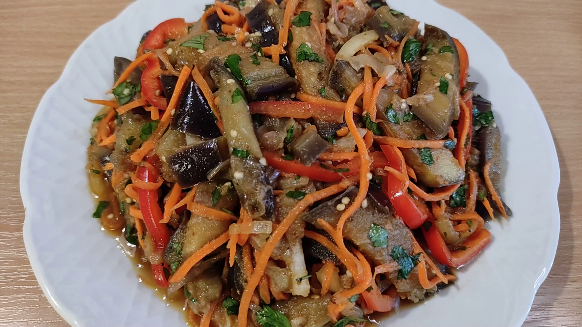 Хе из баклажанов по-корейски: пикантная закуска за 10 минут.