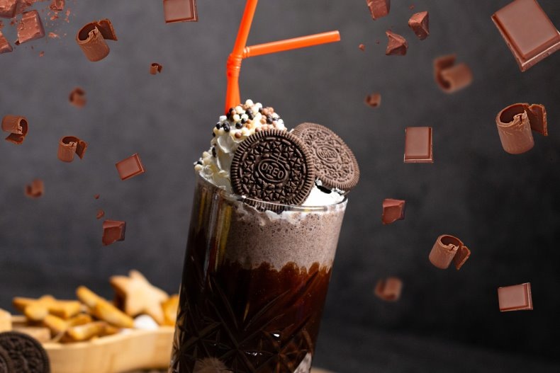 • Взбитые сливки – по вкусу 1. В чашу блендера отправьте печенье (оставьте пару штук на украшение), мороженое и молоко. Измельчите до однородности. 2.. Стакан для подачи украсьте шоколадным топпингом. 3. Влейте в стакан коктейль, сверху украсьте взбитыми сливками, оставшимся печеньем и шоколадной посыпкой. В этот день какао и шоколада наслаждайтесь мгновениями радости и делитесь сладкой сказкой с близкими – десерт не только вкусный, но и красивый, как маленькая шоколадная открытка.