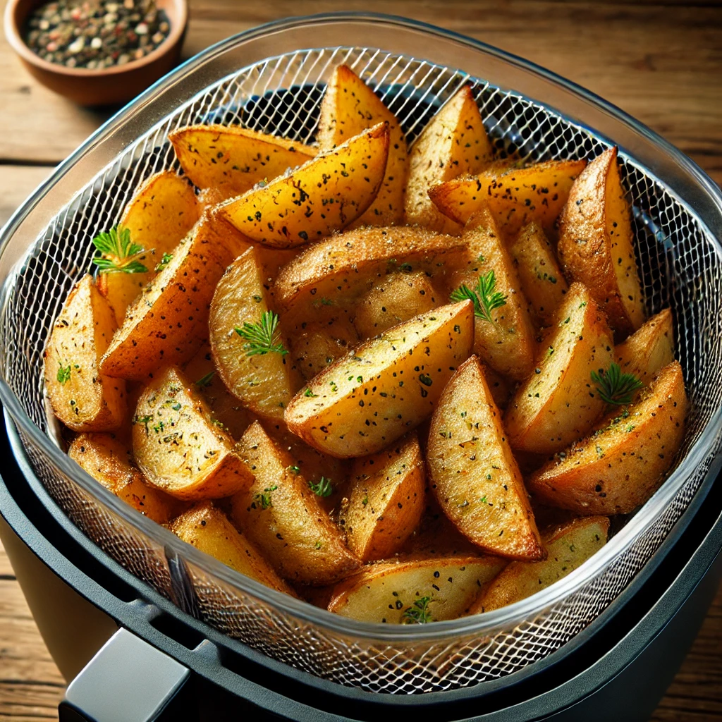 Картошка по-деревенски — это вкус детства и дачи: золотистые дольки с хрустящей корочкой и мягкой серединкой. Раньше я жарила её на сковороде с маслом — долго, жирно и кухня вся в брызгах. Теперь готовлю в аэрогриле — без лишнего масла и за считанные минуты. Время приготовления Аэрогриль (артикул ВБ: 340145383) готовит горячим воздухом на 360°, что делает приготовление картофеля в разы быстрее и полезнее. Интенсивная циркуляция воздуха создаёт ту самую хрустящую корочку без фритюра и литров масла. За счёт конвекции картошка пропекается равномерно со всех сторон всего за 15 минут. А объём 5 литров позволяет готовить сразу большую порцию на всю семью. 1. Готовлю картошку Тщательно мою картофель, кожуру оставляю — в ней много полезного и она даёт дополнительную хрустящую корочку. Режу дольками, как апельсин. 2. Добавляю специи В глубокой миске смешиваю картошку с паприкой, чесноком, солью и перцем. Иногда добавляю ложку оливкового масла для более румяного цвета, но чаще готовлю вообще бе