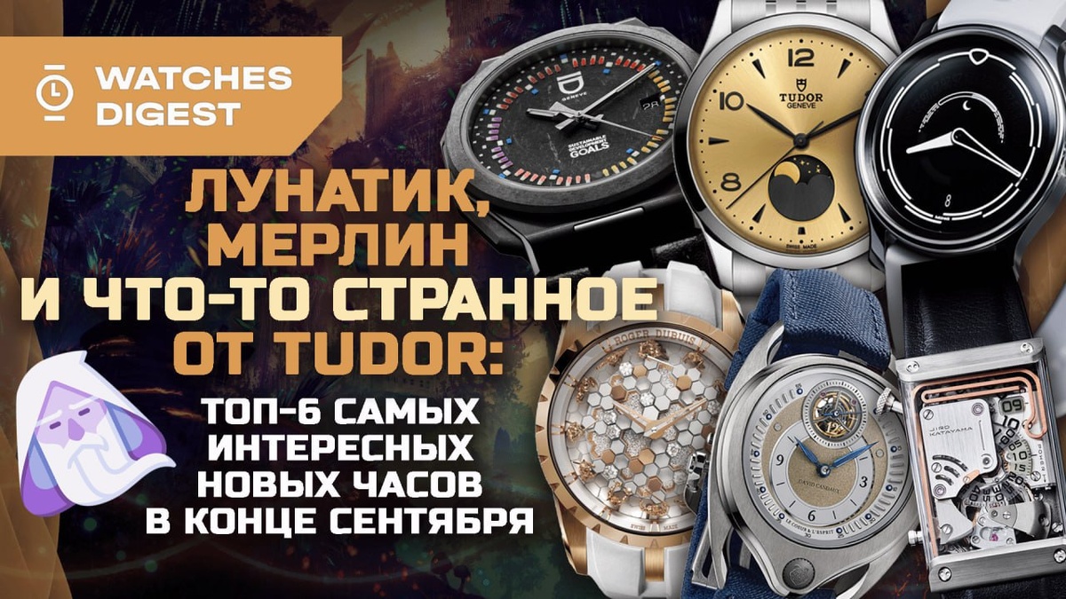 ЛУНАТИК, МЕРЛИН И ЧТО-ТО СТРАННОЕ ОТ TUDOR: ТОП-6 САМЫХ ИНТЕРЕСНЫХ НОВЫХ ЧАСОВ В КОНЦЕ СЕНТЯБРЯ #новости_WD В плане часовых новинок последняя неделя сентября выдалась яркой: — Otsuka Lotec № 9: японский независимый бренд перешел в другую лигу по цене и сложности; — Roger Dubuis Excalibur Knights of the Round Table, The Enchanter Merlin: это точно искусство, но не очень понятно — больше часовое или больше художественное; — David Candaux DC12 MaveriK: долгожданная новинка Д.Кандо с двойным балансом; — Ming 37.05 Lunatic: заключительная модель в трио с индикатором лунных фаз; — ID Genève Circular SDG: микс из ООН, экологии и ETA 2824 в часах за $10000; — Tudor 1926 Luna: первый лунник компании получил на редкость спорный дизайн. А что бы вы назвали главной новинкой недели: индустриально-изобретательные Otsuka Lotec, волшебные Roger Dubuis, инновационные David Candaux или космические Ming? Хотели бы вы видеть в своей коллекции лунник Tudor? И готовы ли заплатить 10 000 долларов за ETA 2