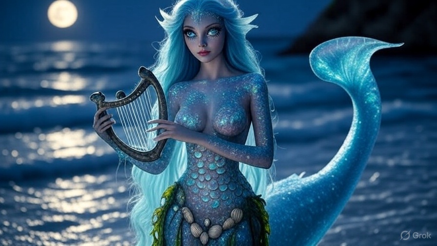На иллюстрации одна из самых востребованных (для перевоплощения) у женщин персон в ролевых играх: Таинственная Сирена, мистическое существо с магическим обаянием, излучающее загадочность и соблазн.