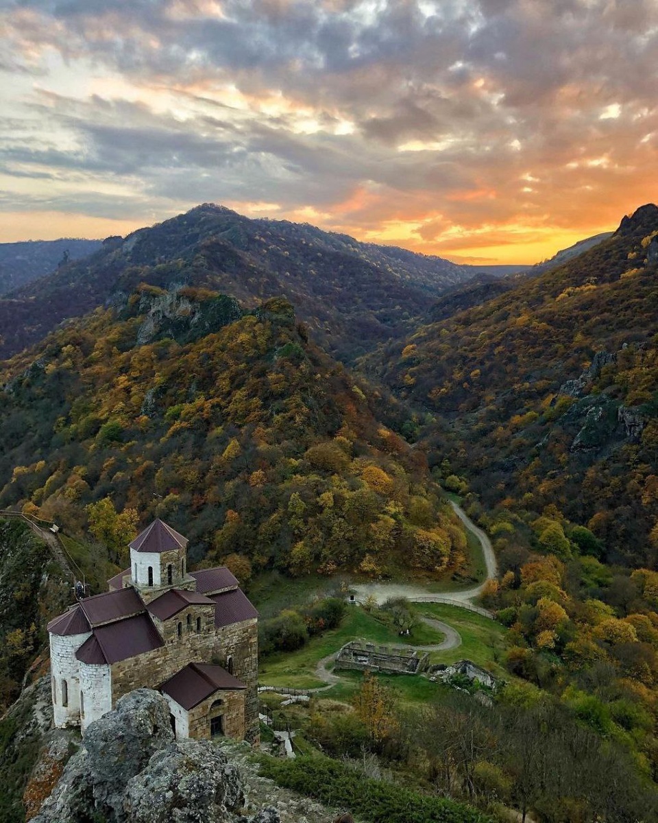 ⛪️ Шоанинский храм на закате Одно из немногих архитектурных свидетельств древнего христианства на Кавказе. Возведён тысячу лет назад на горе Шоана в КЧР. 📷 artemmeletov ⛏ Юг Край