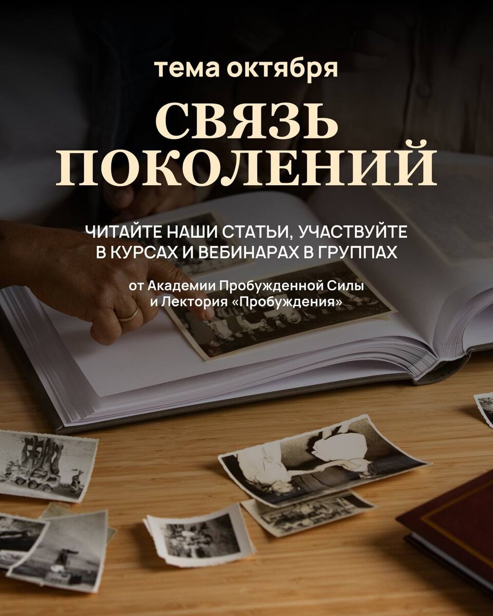 А 13 октября состоится вебинар Елены Шубиной «Поколенческие конфликты». Это серьезное погружение в тему кармической психологии, ещё один инструмент исследования себя и истории рода.