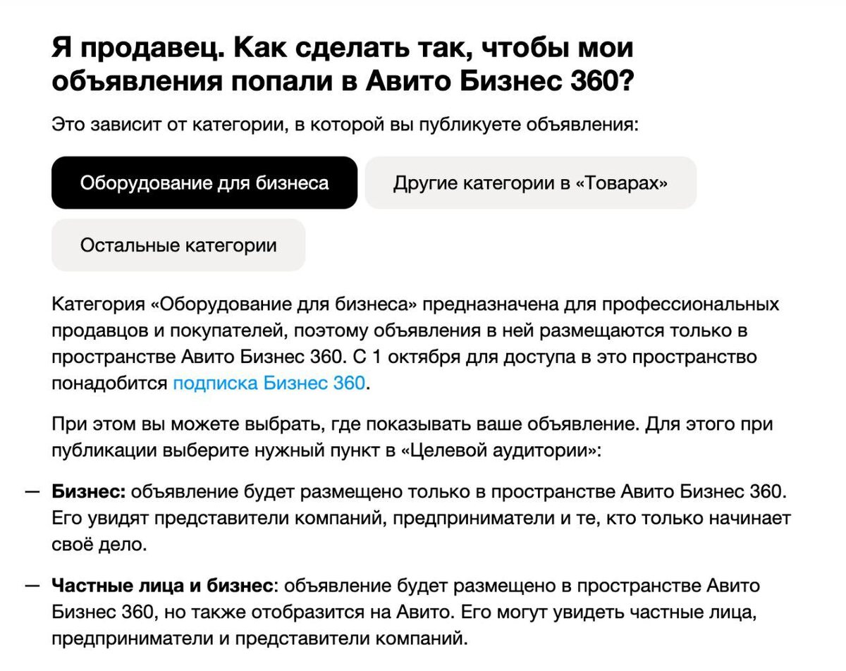 Во-вторых, объявления из категории «Оборудование для бизнеса» будут работать только в пространстве Авито Бизнес 360.