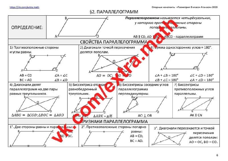 📆На 1-6 учебных неделях ученики 8 класса на уроках геометрии изучают тему “Четырехугольники" (11 ч) Уроки 1-11. По этой теме у меня есть материалы: 🔹Опорные конспекты (теория) на весь год: digital.wildberries.ru/offer/246576 🔹ВПР «Четырехугольники» digital.wildberries.ru/offer/473996 🔹ОГЭ (1 часть) "Параллелограм" digital.wildberries.ru/offer/133295 🔹ОГЭ (1 часть) "Трапеция" digital.wildberries.ru/offer/133294 🔹ОГЭ (1 часть) "Прямоугольник, ромб, квадрат" digital.wildberries.ru/offer/133293 🔹ОГЭ (2 часть) Геометрические задачи на вычисления "Четырехугольники" в составе сборника: digital.wildberries.ru/offer/253458 🔹ОГЭ (2 часть) Геометрические задачи на доказательства "Четырехугольники" в составе сборника: digital.wildberries.ru/offer/411459 🔹ЕГЭ база Четырехугольники digital.wildberries.ru/offer/321269 📚 Все мои материалы в таблице: vk.cc/cHlmAx