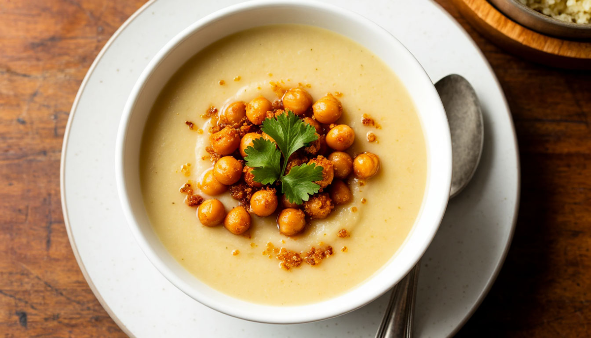 Сливочный суп из корня сельдерея с хрустящим нутом и розмарином