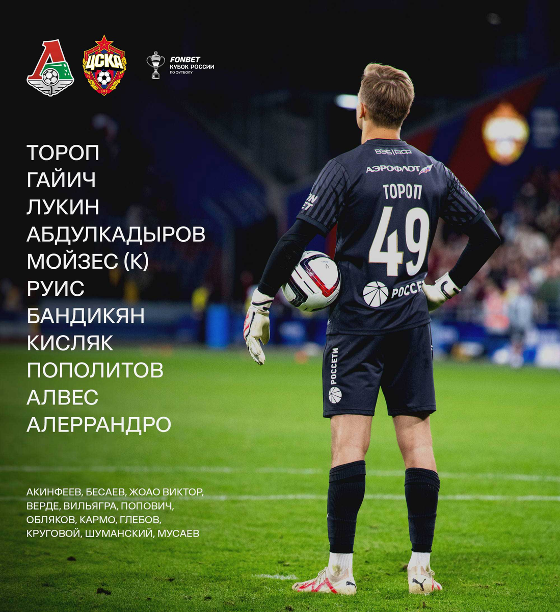 У «Локомотива» стартовый состав сильнее отличался от последнего матча чемпионата, но, в принципе, те же Морозов, Бакаев, Комличенко, Ненахов вполне себе могут считаться игроками стартового состава, ну а Баринов так вообще лидер команды.