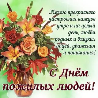 Дорогие мои дамы и джентльмены серебряного возраста! От всей души поздравляем вас с Международным днём пожилых людей! Этот день — прекрасный повод выразить вам нашу глубокую признательность и уважение за ваш неоценимый жизненный опыт, мудрость и заботу, которые вы дарите окружающим. Вы — хранители семейных традиций и жизненной мудрости. Ваш труд и достижения заслуживают самого большого восхищения и благодарности. Желаем вам крепкого здоровья, душевного спокойствия, благополучия и радости в каждом дне. Пусть ваши дни будут наполнены теплом, заботой и вниманием близких людей. Счастья вам, долголетия и мирного неба над головой! С уважением и благодарностью, я Вера.