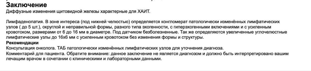 В общем пациентка написала на меня жалобу, т. к. посчитала, что я её излишне напугал... А я ведь даже не пугал. Просто сказал, что узлы вызывают онконастороженность, похожи на mts. Так я не мог по другому поступить... Не мог же я отправить пациента в свободное плаванье если увидел не очень хорошую УЗ картину. Многие думают, что медицина как математика, где A + B = C. Врачи мыслят другими категориями: Мы знаем, что у 50% ЭТО проявляется так, у 30% ЭДАК, у 8% ещё КАК ТО ТАК, а у 2% вобще ПО ДРУГОМУ - и это в рамках одной патологии! Поэтому и лечим не болезнь, а больного, поэтому перестраховываемся и делаем поправку на эти 2%, потому что не хотим вляпаться в казуистическую историю и что то нервно потом бормотать перед прокурором. Я видел такие истории и не раз. Заканчиваются они часто тем, что пациент попадает в итоге к врачу, который никогда не ошибается с диагнозом! (угадайте как называется этот врач) Тут я представил своё заключение УЗД, Жалобу пациентки и свою объяснительную.