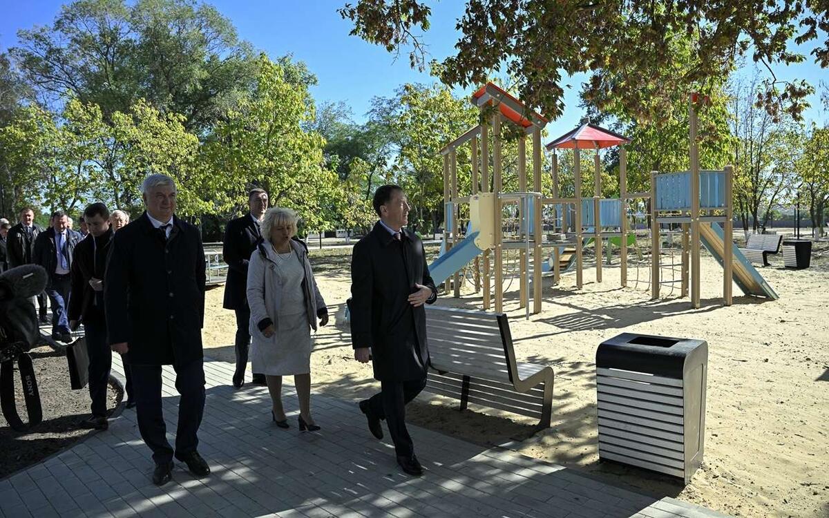 Во время визита в район губернатор и вице-спикер Госдумы осмотрели и благоустройство парка «Белый аист» в селе Евстратовка. В 2023 году поселение выиграло областной конкурс «Территория идей», где эскиз местной жительницы Раисы Ткачевой стал основой проекта. В селе живут 1300 человек, и парк – их главное место для отдыха и развлечений. По инициативе ТОС здесь обновили входную группу, установили скульптуру «Аисты» на центральной аллее, окруженную клумбами и лавочками. Скоро высадят декоративные деревья и кустарники. Стоимость проекта – 15,3 млн рублей.
