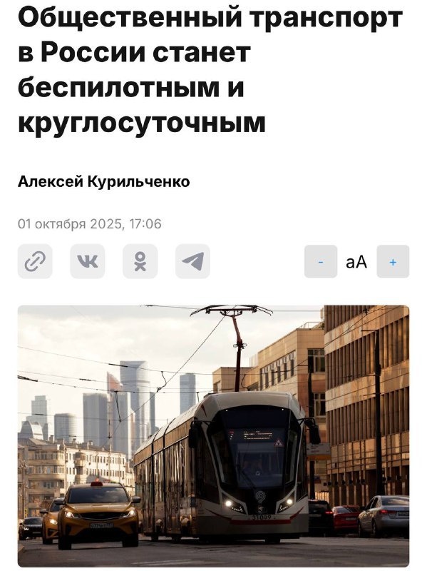 В России планируют сделать весь общественный транспорт круглосуточным и полностью беспилотным
