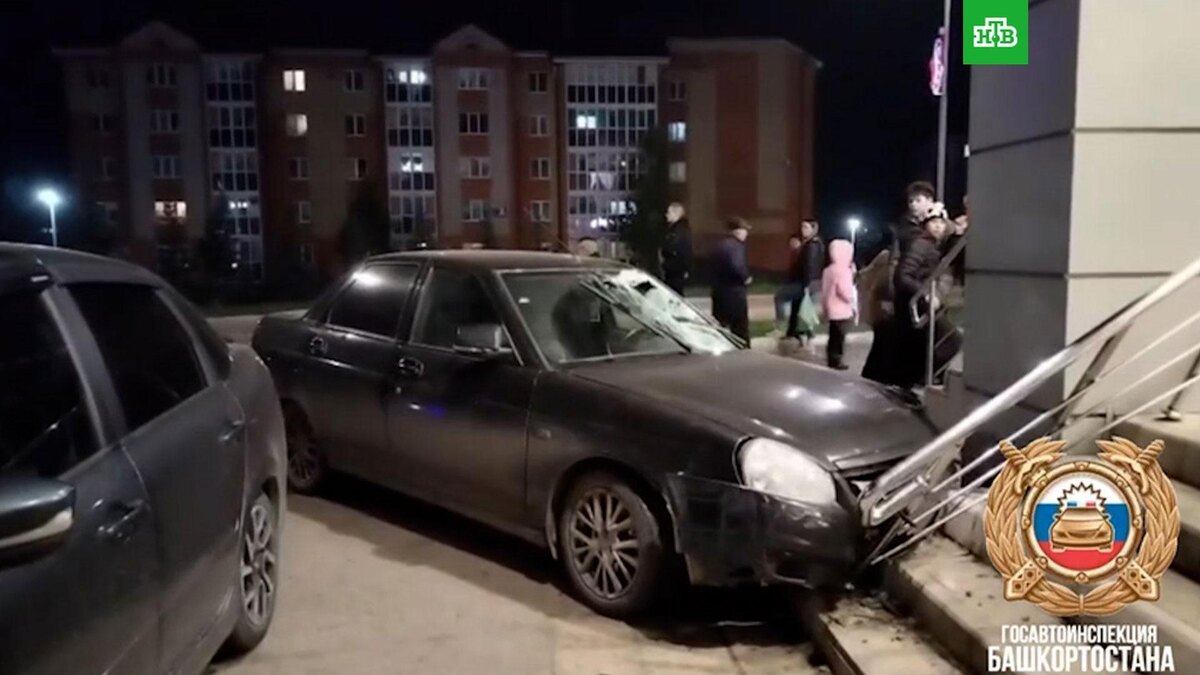 Автокатастрофа произошла сегодня вечером в городе Туймазы. 20-летний водитель Lada Priora сбил женщину и ребенка на переходе, а потом врезался в магазин.
