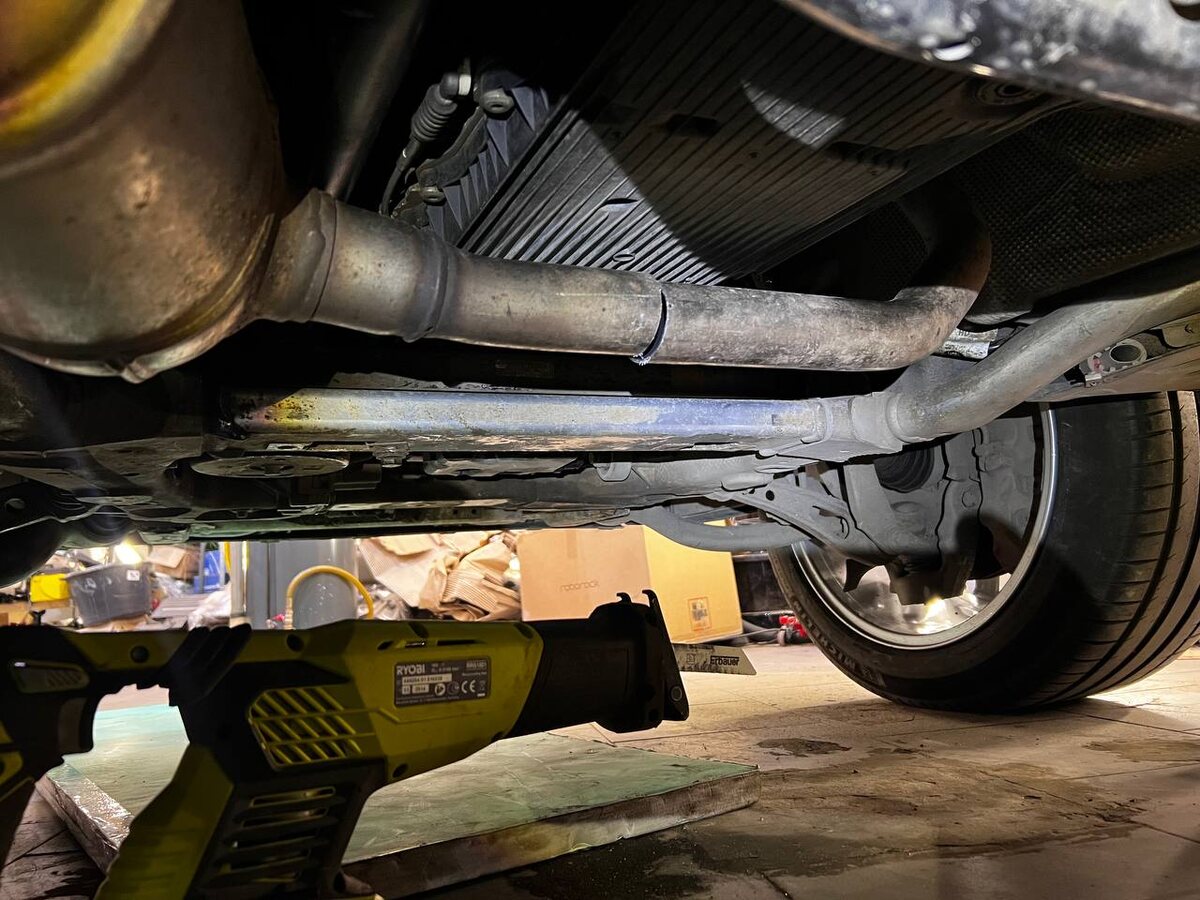 После запуска Range Rover sport Арероль во время включения 2 турбины на продувку выяснилось, что принимая труба с отломанным куском держать не будет. Как она держала раньше загадка, и держала ли вообще вопрос) Быстро набрал на дружественную разборку и мне отрезали нужный кусок трубы. В технологии ремонта турбины как раз предусмотрен частичный демонтаж системы выпуска путем отпиливания части трубы с последующим скреплением ее специальным хомутом. Но оригинальный хомут стоит неприлично дорого да и почему то обозначен как хомут на трубу 55 мм. Вооружившись штангенциркулем я намерил только 50 мм и заказал хомут отечественного производства всего за 1000 рублей! Далее дело за малым, отпиливаем кусок трубы от выхлопной, укорачиваем с разборки и ставим все на место. Теперь все работает как надо. Всем добра