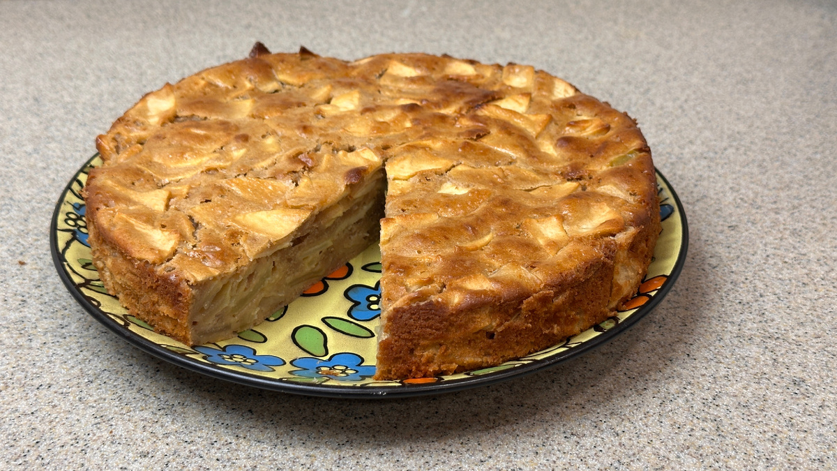 🛒 ИНГРЕДИЕНТЫ Для теста: · Мука — 250 г 🫙 · Сахар — 240 г · Яйца — 4 шт. (С1) 🥚 · Сливочное масло — 100 г · Молоко — 160 мл 🥛 · Разрыхлитель — 1 пакетик · Ванильный сахар — 1 пакетик · Соль — ¼ ч.л. Для начинки: · Яблоки — 6 шт. (кисло-сладкие, типа антоновки, а лучше именно антоновка, даже не лучше, а ТОЧНО антоновка) 🍏🍎 · Корица — 2 ч.л. (по желанию) 🌿 👨🍳 ПОШАГОВЫЙ РЕЦЕПТ ШАГ 1: Подготовка яблок · Очистить яблоки и удалить сердцевины (или обрезать на 4 части). ✂️ · Нарезать тонкими дольками (2-3 мм). · Можно сбрызнуть лимонным соком, чтобы не темнели. Я без этого обхожусь. ШАГ 2: Приготовление теста · Сахар взбить вместе с яйцами до пышности. 🥣 · Влить молоко, добавить ванильный сахар и перемешать. · Добавить растопленное сливочное масло. · Просеять муку с разрыхлителем и солью, аккуратно вмешать в тесто. · В тесто можно добавить корицу. Корицу можно добавить и к яблокам. · Тесто будет довольно жидким — это правильно! 👍 ШАГ 3: Сборка · Смазать форму маслом. · Яблоки п