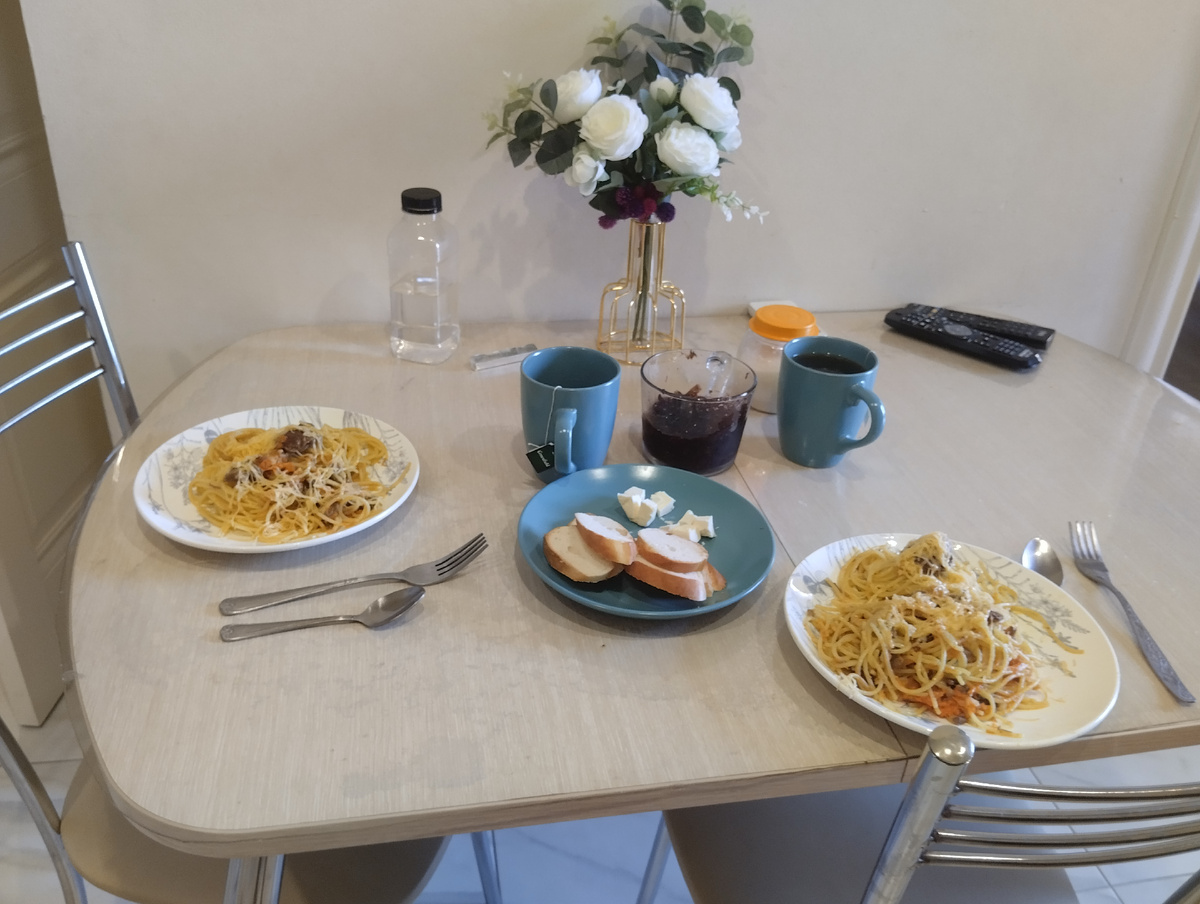 Дома по быстрому я обед приготовила суп с фрикадельками, которые мы налепили заранее.