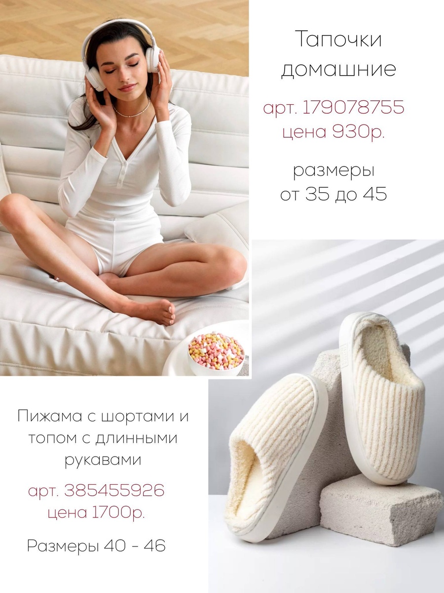 Эти шесть вещей легко комбинируются и создают разные настроения — от молочного «облака» до небесной прохлады и золотистого уюта. Выбирайте пару тапочек под сезон, одну однотонную пижаму для «чистых» образов и один струящийся комплект с характером — и ваш домашний гардероб станет продуманным, красивым и очень комфортным.