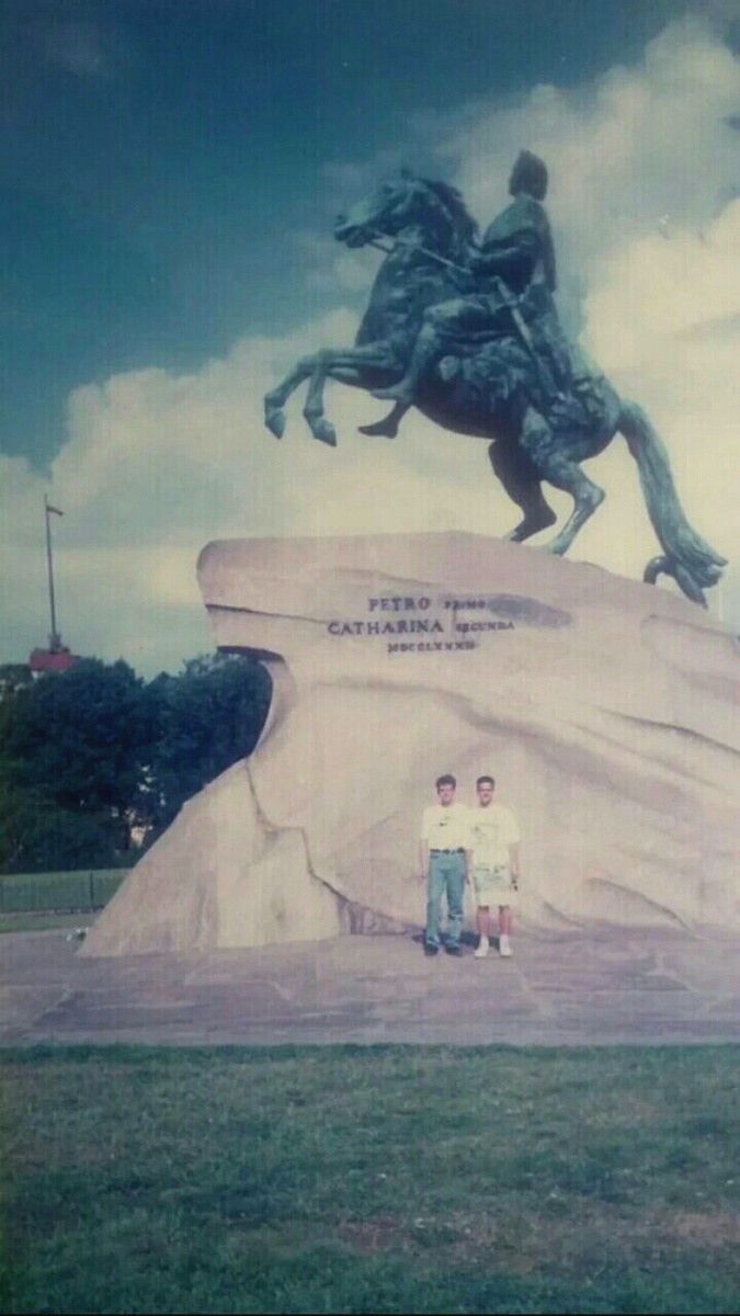 ПРО ФОТО: а это брат уже с другим другом, Вовой Богатырёвым, с помощью которых фотограф решил показать размер сооружения, иначе попросил бы их подойти к камере, тогда бы на фото были бы и люди в нормальном разрешении и памятник, но не был бы известен его масштаб, другие подробности - под вчерашним, школа и выпуск те же.