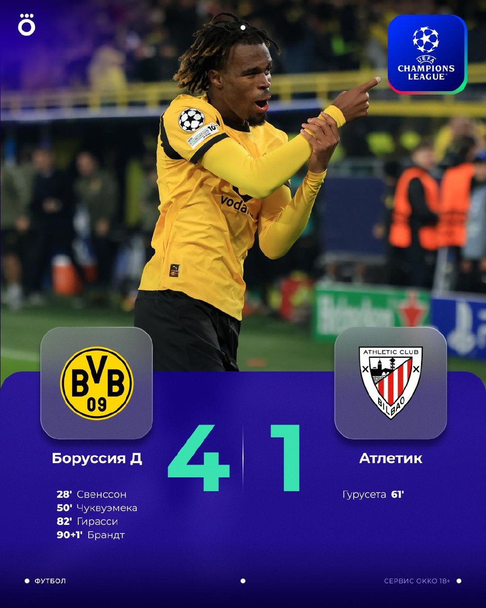 8 голов в двух матчах ЛЧ у «Боруссии». Они по-другому не умеют 🤩 Заслуженная победа «шмелей».