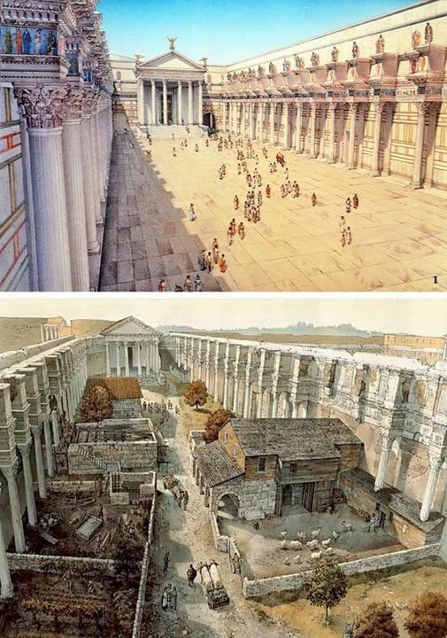По моему скромному диванному убеждению, современный мир, в особенности его вершина в виде Европы и Запада в целом, представляет собой позднюю Римскую Империю. С одной стороны - вершина могущества и глобальное доминирование, а с другой - стремительная деградация экономики, науки и культуры. При сохранении всех текущих трендов, крах западноцентричного (преимущественного "белого") мира видится неизбежным. Да, и неоварвары уже готовы перехватить бразды правления повсеместно в Европе. Точно также, как это произошло в период краха Римской Империи. На иллюстрации показан Форум Нервы (место публичных мероприятий в г.Рим, названного в честь императора Марка Кокцея Нервы) в I веке н.э. и IX–X веках. Неоварвары, не способные понять, оценить и перенять достижения умирающей цивилизации, просто окишлачат её наследие. Точно также, как это произошло с наследием Рима. Тысячу лет понадобилось бывшим рабам империи и пришлым варварам, чтобы дорасти до уровня (эпохи Возрождения), который был бы достаточн