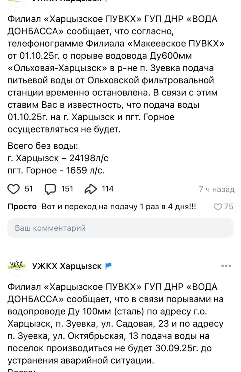 Донецкая группа новостей|Донецк.ДНР (VK) О ситуации с водой в Харцызске