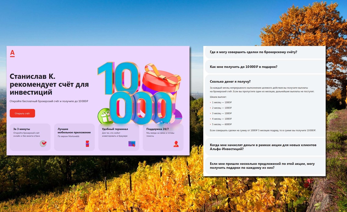 Теперь еще легче получить от Альфа-Банка 10 000 рублей за действия с брокерским счетом