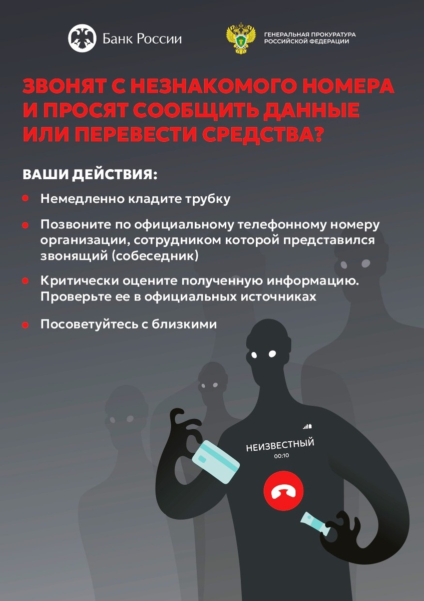 ‼️Телефонные мошенники не дремлют и придумывают всё более изощрённые способы, чтобы завладеть вашими деньгами. Они могут представиться сотрудниками банка или даже вашим родственником и сообщить, что попали в беду. Как защитить себя от таких злоумышленников? Следуйте простым правилам! 🔊Подробно об этом — в инфографике от Белебеевской межрайонной прокуратуры.