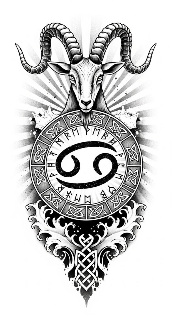 #2759 Подборка по запросу подписчика - Рак в год козы- овцы в слвянско готическом стиле! Можно пожалуйста!!!Рак в год козы- овцы в слвянско готическом стиле! 🧠 SYNTX - создай свой эскиз 💎 Информация - все услуги 💀 Эскизы от нейросети #рак #коза #готика #эскиз #тату #татуировка