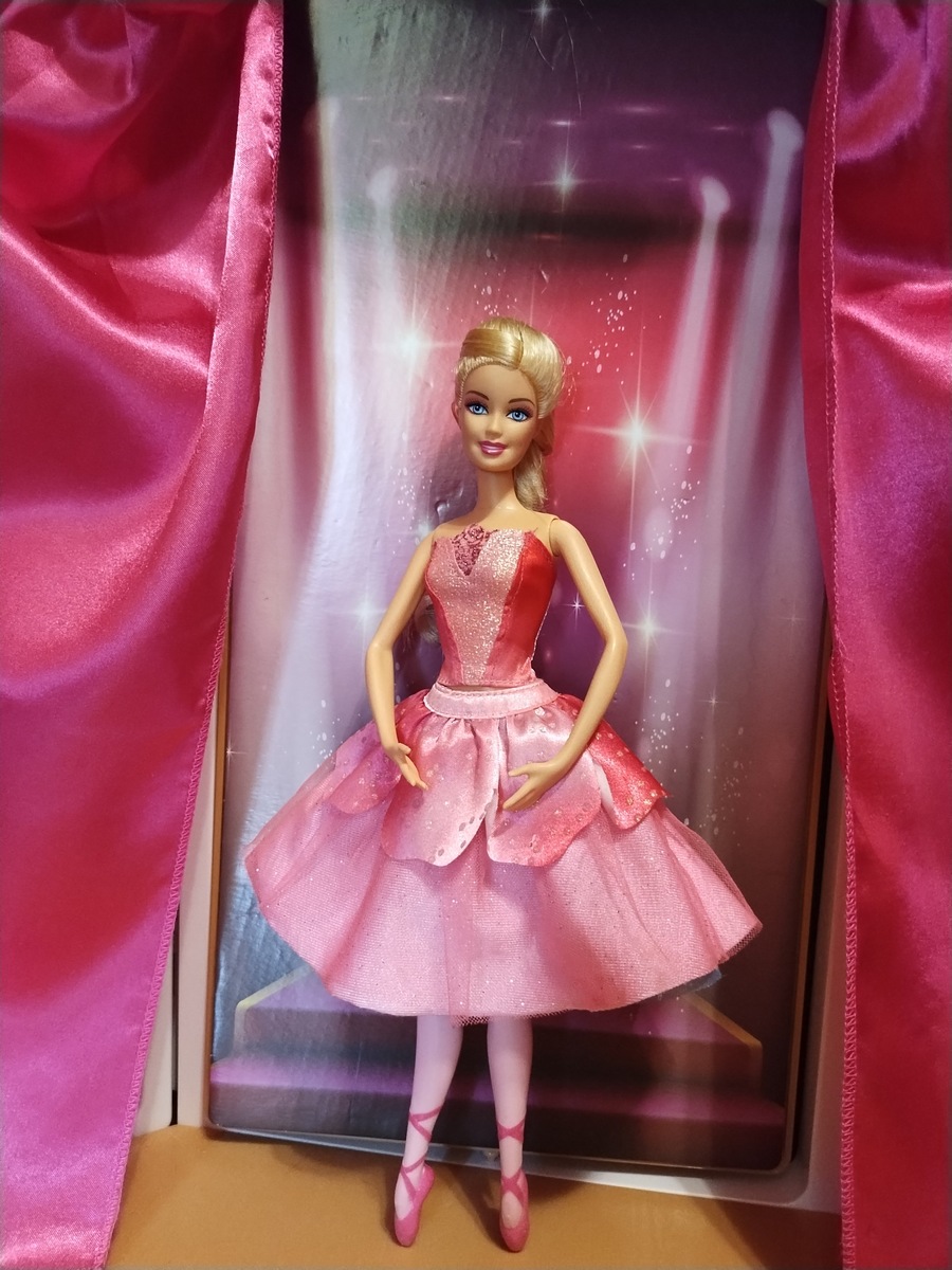 Всем доброго дня! Хочу показать моих Барби -балерин. Их у меня несколько. И разных молдов. Но всех решила обьединить в одну фотосессию. Вначале Барби на молде Generation girls. Это очень красивая куколка, тело модельное с определенной позой балерины. То есть она всегда находится тольков одной позе. Это кукла чисто коллекционная. И я ничего не собираюсь менять. Она в этом образе хороша и гармонична, сама по себе. Это блондинка в розовом наряде: Юбка, лиф и пуанты- все розовое. Другая Барби - суперстар. У нее тело шарнирное, как у Экстр. Наряд тоже весь розовый, блестящий, пачка, лиф, и еще розовые колготы в сеточку. Они немного брыжатся на ножках, но я ничего не могу тут поделать. Эта куколка тоже очень симпатичная блондиночка. Эту куколку очень трудно было поставить в позу, она плохо стоит сама, но мне хотелось сделать несколько кадров без подставки. И мне удалось. На другом фоне. Здесь хорошо видно, какое нарядное платье в этой Барби! И другая куколка на этом фоне Здесь она в друго