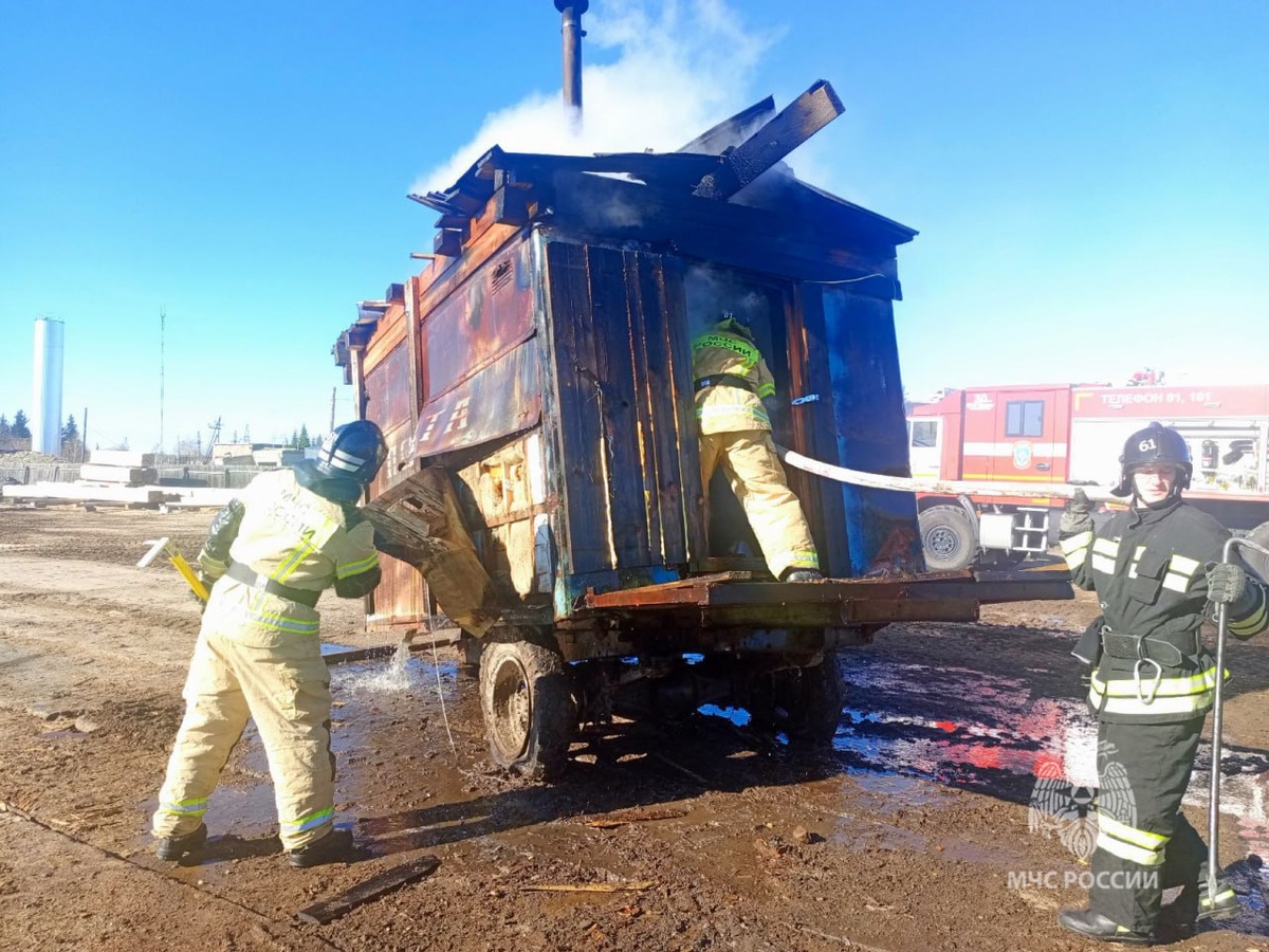 В селе Пировском днём из-за печи загорелся строительный вагончик. Пожар был ликвидирован на площади 12 квадратных метров.