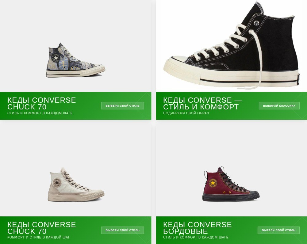🔥 Стильная обувь для каждого! 🔥 Кеды Converse — классика, которая никогда не выйдет из моды. 👟 ya.cc/7hrY2v Chuck 70 в сером цвете — выбор стильных и уверенных в себе. 🌫 ya.cc/7hrY2z Бежевые кеды Chuck 70 Gore-Tex — комфорт и стиль в каждой детали. 😊 ya.cc/7hrY32 Бордовые Chuck Taylor All Star CX — добавьте яркости в свой образ! ❤️ ya.cc/7hrY3G Зелёные кеды Chuck Taylor All Star 70 — для тех, кто любит выделяться. 🌱 ya.cc/7hrY3K Женские кеды в бело-жёлтой расцветке — лёгкость и стиль. ✨ ya.cc/7hrY3M Загляните и выберите свою пару! 😍 Реклама. Информация о рекламодателе по ссылке.